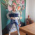 Material: 97% Baumwolle, 3% Elasthan (Stretchiger, beruckter Stoff)